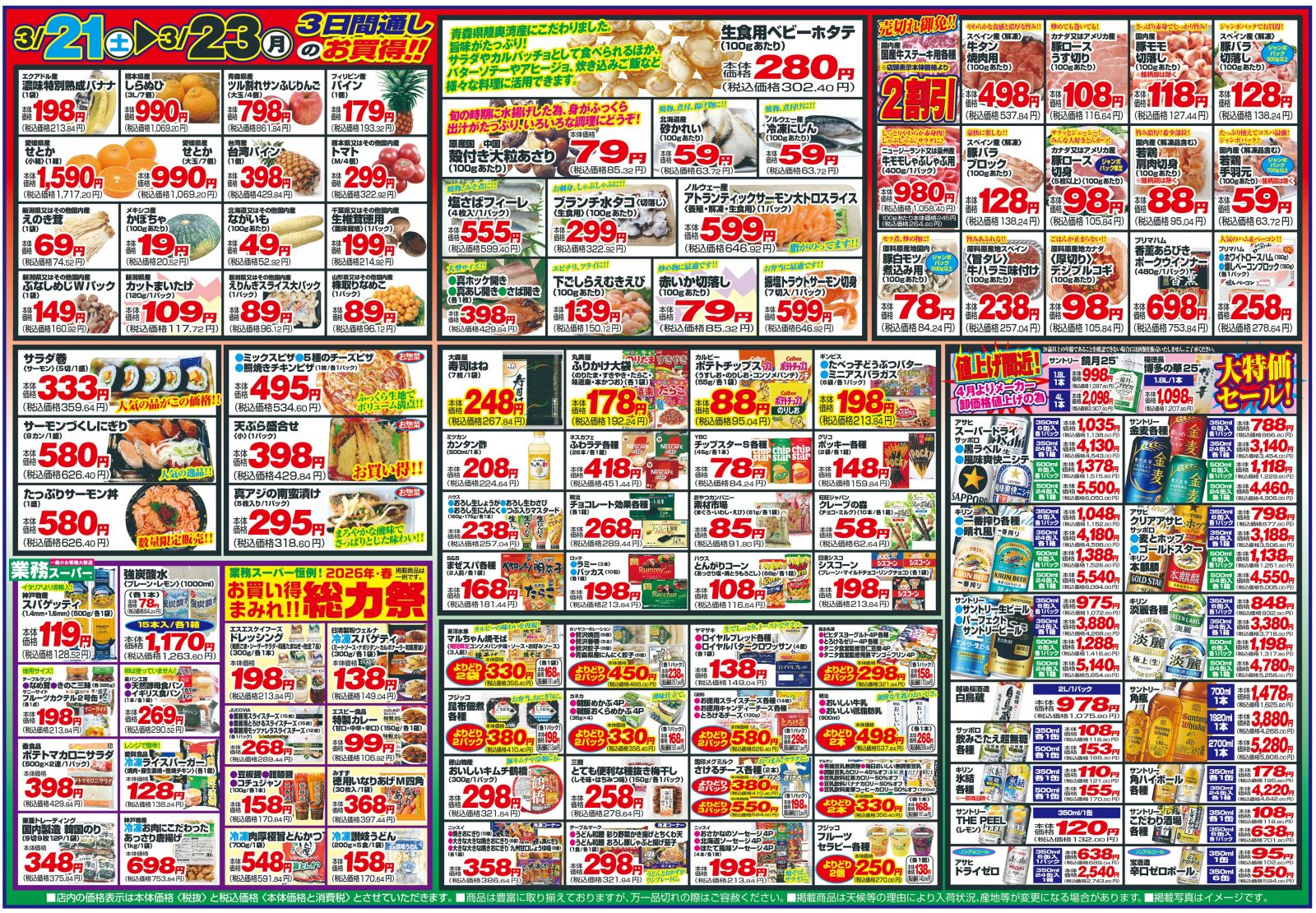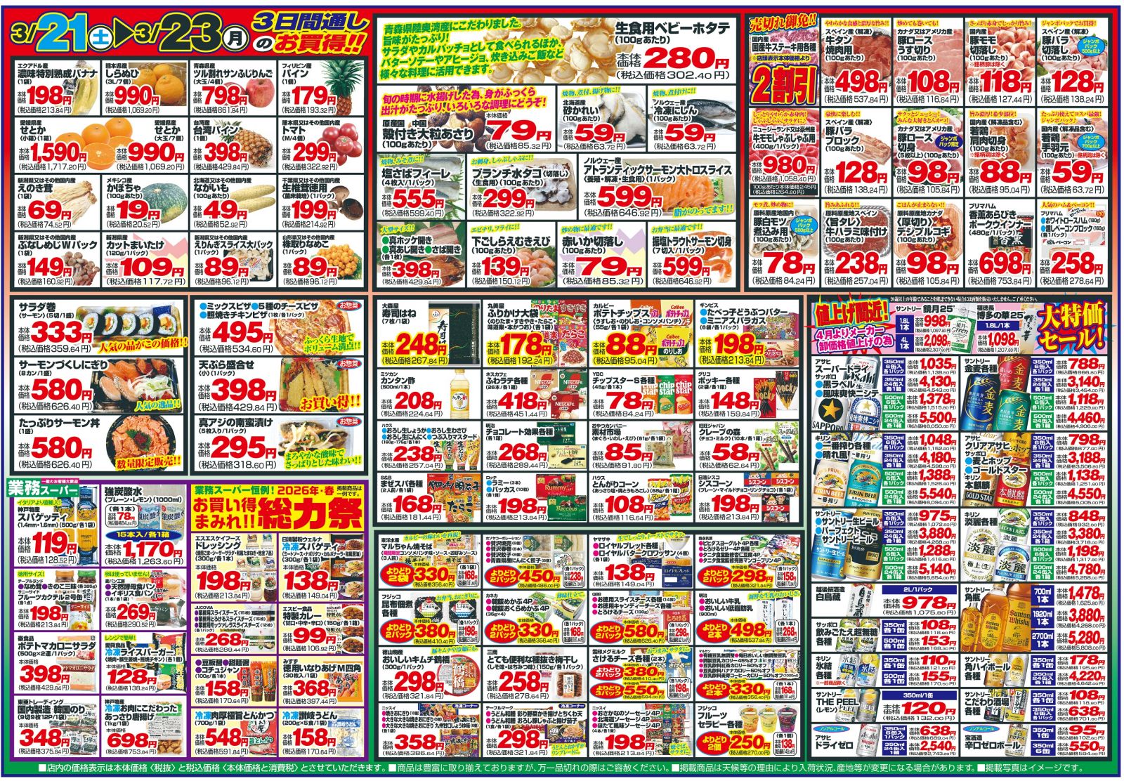 - ※お盆、年末年始の営業時間については、チラシまたは店内掲示をご覧ください。